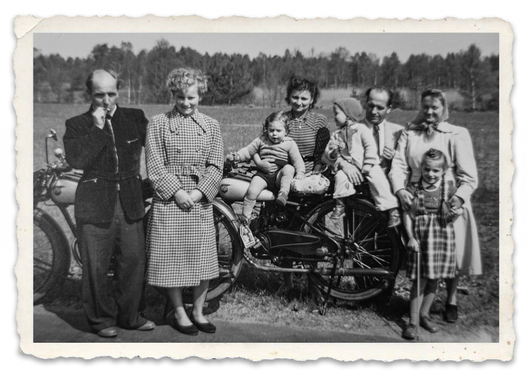 Das Foto ist von 1954 und zeigt Willi Reinke (links) mit seiner Frau Luzie und ihrem Sohn Heinz Reinke – auf dem Motorrad vor Frida Reinke- , wie sie gemeinsamt mit Walter Reinke (rechts), sowie dessen Frau Henny und deren Sohn Helmut Reinke – auf dem Motorrad vor Walter Reinke – einen Motorradausflug nach Lüneburg machten, dort besuchten Sie Frida Reinke (Bildmitte) und deren Tochter Gisela (rechts im Bild).